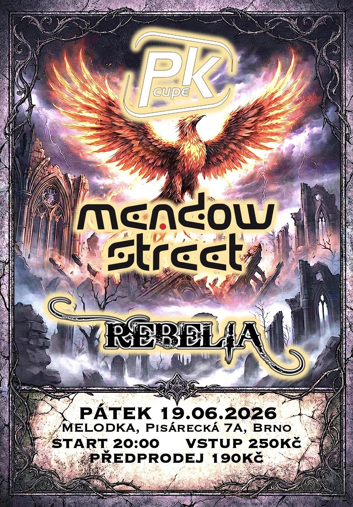 Od Grunge-rockové kapely PK CUPE, přes gothický rock MEADOW STREET až po metalovou REBELIA 🤘🤘🤘